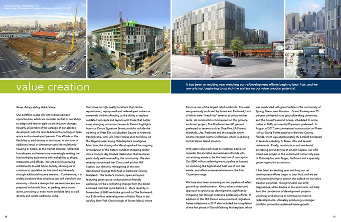 As the retail industry transforms, skillful adaptation is key to the success of retailers and property owners. While Kimco’s high-quality portfolio is well-positioned to adapt to changing consumer and retailer preferences, their mission remains the same: to create destinations for everyday living that inspire a sense of community and deliver value to their many stakeholders.