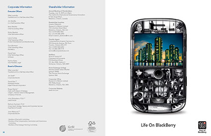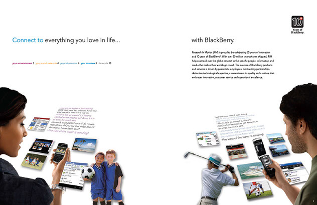 RIM celebrates 25 years of innovation and 10 years of BlackBerry®. With over 50 million smartphones shipped, RIM helps users all over the globe connect to the specific people, information and media that makes their worlds go round. This year's report explores those connections.