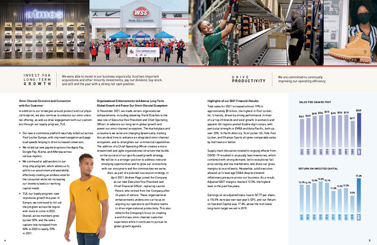 2021 was a remarkable year for Foot Locker, Inc., with the company achieving record sales and profits, driven by healthy demand in their category, a favorable promotional environment, and strong execution by the team against their strategic imperatives to Elevate the Customer Experience, Invest for Long-Term Growth, Drive Productivity, and Leverage the Power of their People.