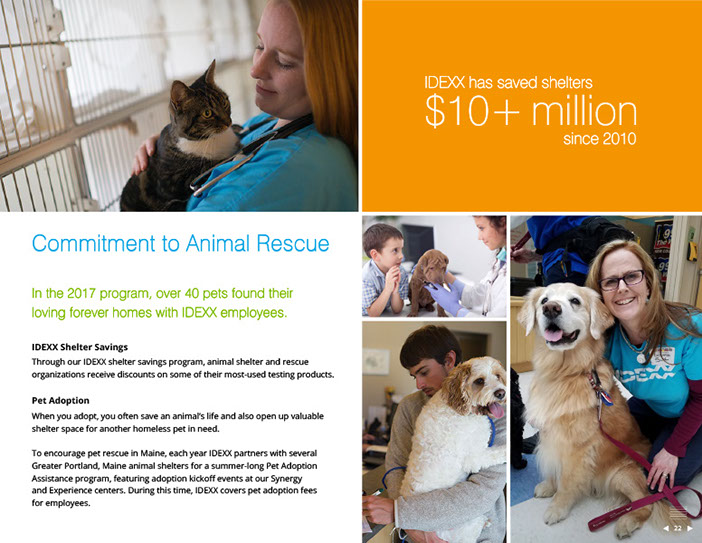 The work IDEXX does makes a positive impact in the world in part by supporting the human-animal bond through advances in pet health care. Pets can’t tell you how they feel, so bloodwork results help give pets a voice in their healthcare. IDEXX's innovations in pet care diagnostics expand their vocabulary.